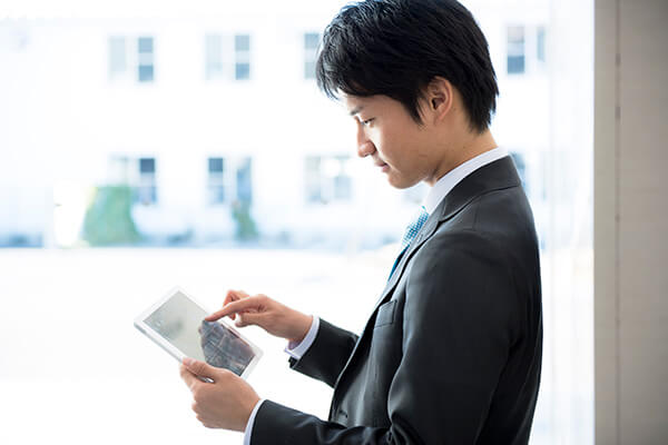 営業部の社員全員にタブレットPCが支給されているので、出先でもメールチェックができる。「それまで手持ち無沙汰だったすき間の時間も有効活用できるようになったし、帰社後にまとめてメールを返信するのって意外と大変なんですけど、その負担が減ったこともよかったです。できるだけ早い返信ができるようになったので、お客様からの信頼感が上がったように感じますね」